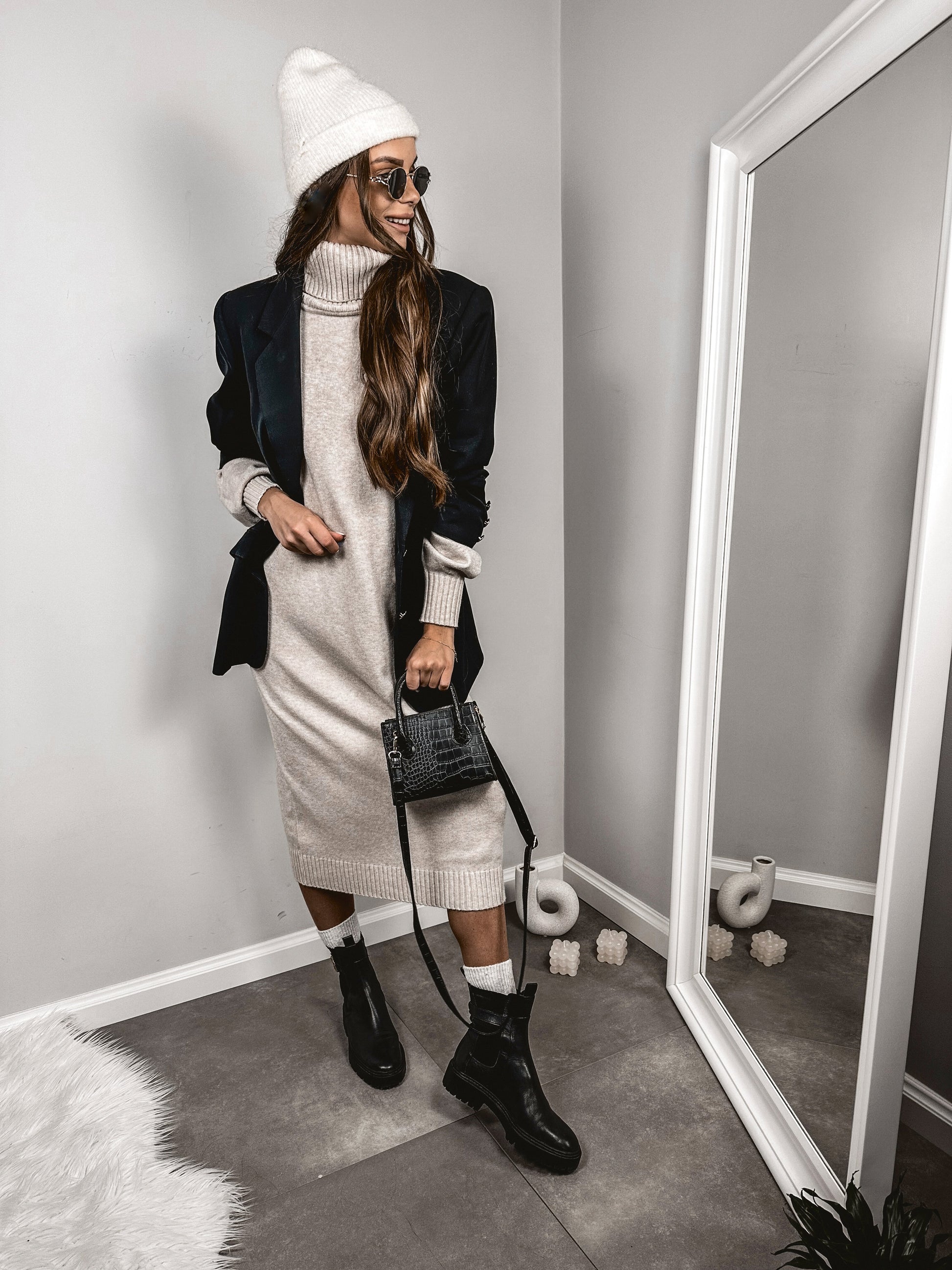 Sukienka Ellen to dzianinowa sukienka, o prostym kroju. Zakończenia rękawów jak i dołu sukienki są wykończone delikatnym ściągaczem, który nadaje sukience ciekawego charakteru.
