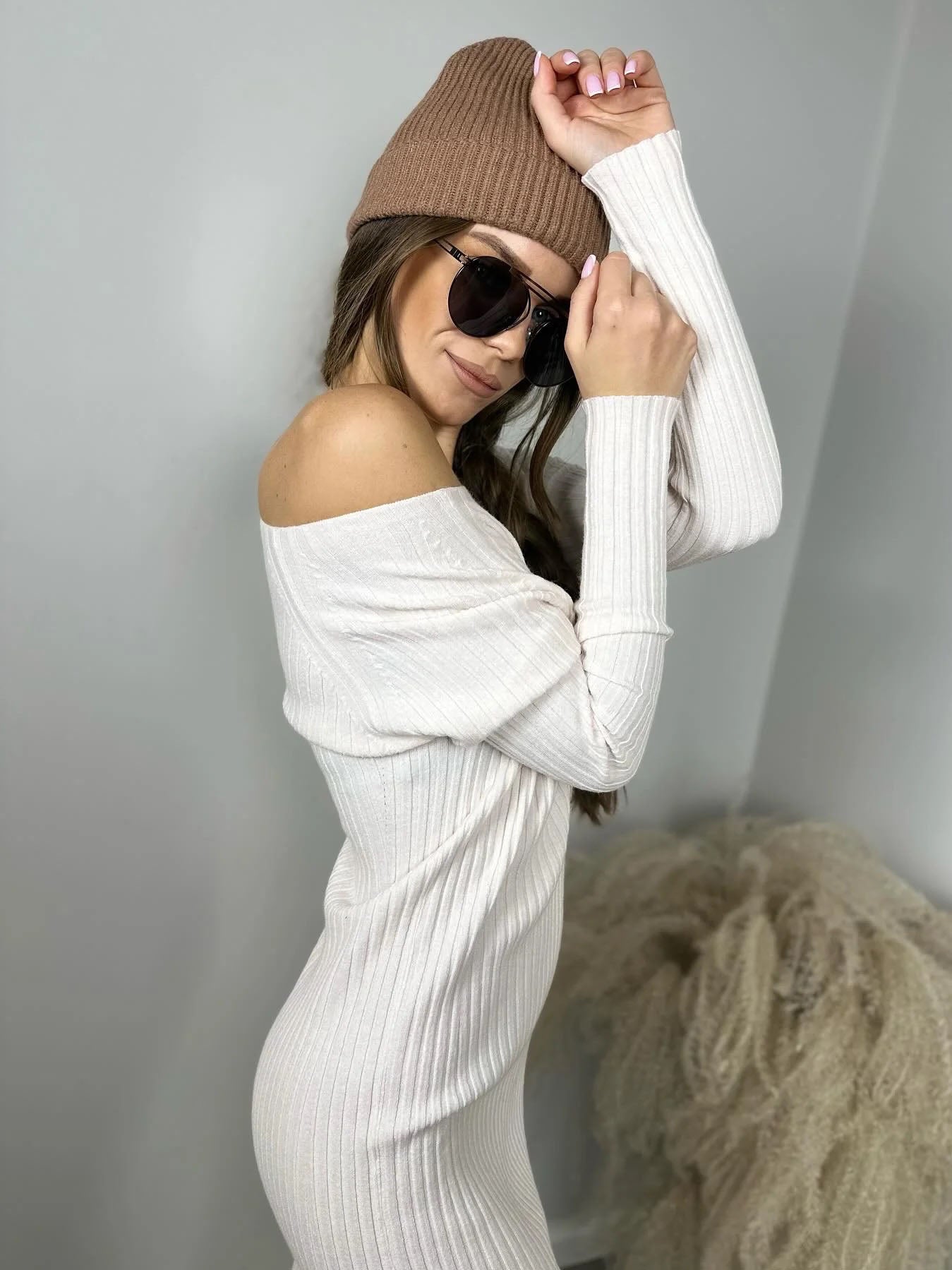 Sukienka Ellie to elastyczna, prążkowana propozycją, dzięki której sukienkę możemy nosić na trzy sposoby: